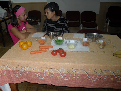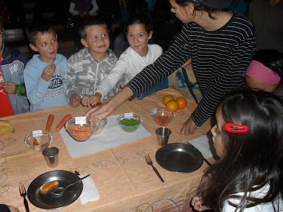Com a colaboração da Biblioteca e integrado na área curricular não disciplinar de Área de Projecto, quatro alunos do 9ºC levaram à cena "Nunca na vida comerei tomate", um livro de Lauren Child. A actividade pretendia assinalar o Dia Mundial da Alimentação (16 de Outubro). Os meninos do 3º ano que assistiram à dramatização não resistiram a provar os alimentos a que Lola se rendeu, depois de ultrapassada a sua resistência por comer ervilhas, cenoura, puré de batata, panadinhos de peixe e...claro, o tomate que ela nunca comeria! Parabéns Marta, Nídia, Tito e Teddy! Formam uma bela equipa! Na 6ª feira repetirão para os colegas do 6º ano.
